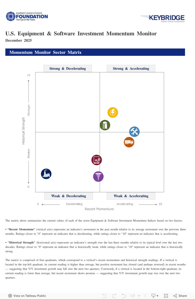 The Foundation-Keybridge U.S. Equipment & Software Investment Momentum Monitor consists of indices for seven equipment and software investment verticals.
